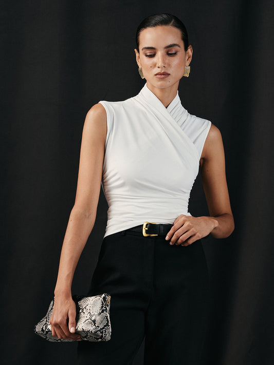 Cross Neck Ruched Tank Top